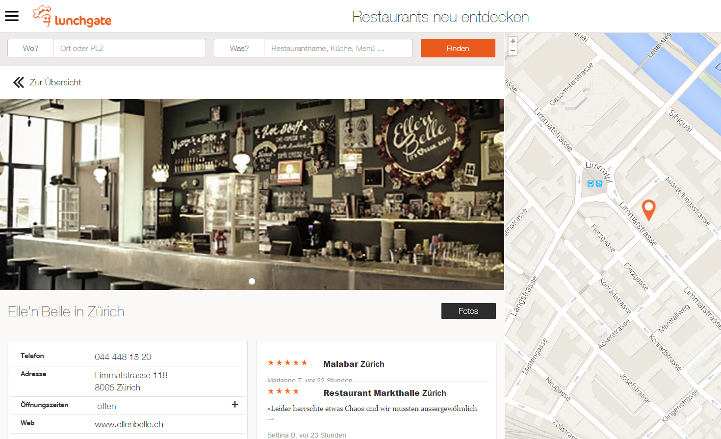 Lunchgate ist die führende Gastronomieplattform in der Schweiz und bietet eine schnelle Suche nach der passenden kulinarischen Perle aufgrund von Ortsangaben wie auch von thematischen Kriterien.