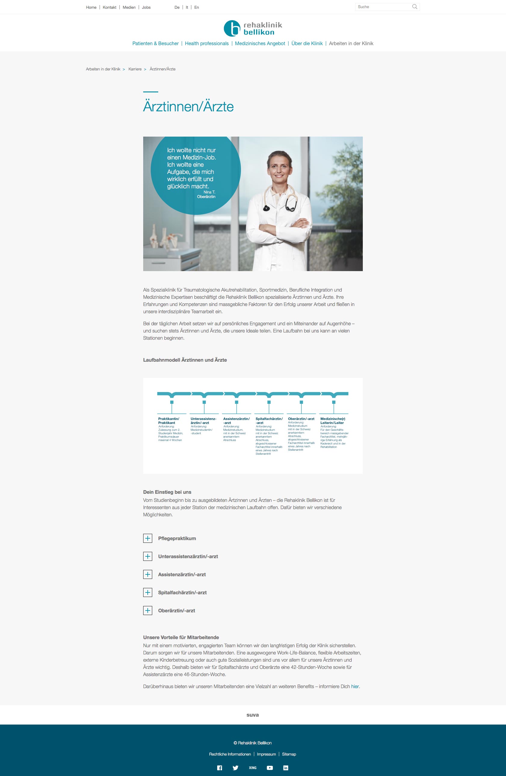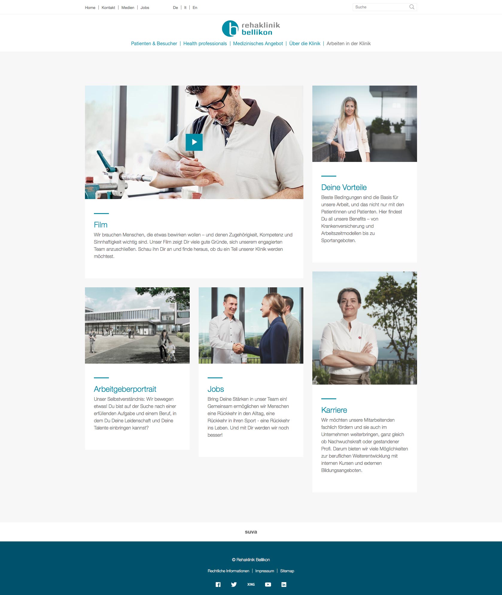 Die Rehaklinik Bellikon ist ein Unternehmen der Suva und die Spezialklinik für Traumatologische Akutrehabilitation, Sportmedizin, Berufliche Integration und Medizinische Expertisen. Im Jahr 2018 wird die rundum erneuere Klinik eröffnet und passend dazu das CI und Webseite komplett neu gestaltet.
